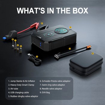 - Car Jump Starter: Get back on the road in no time, with a powerful peak current of >1200 A.