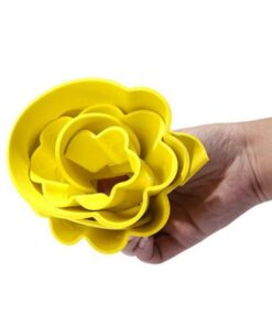 Our floweresque shower cap is constructed of soft, environmentally-friendly EVA resin for a flexible, rubber-like feel and hold. The flower-petal grooves help drain water easily when wet. The cap layer is 0.12 inches in thickness and measures 12.6 x 11.8 inches (L x W).