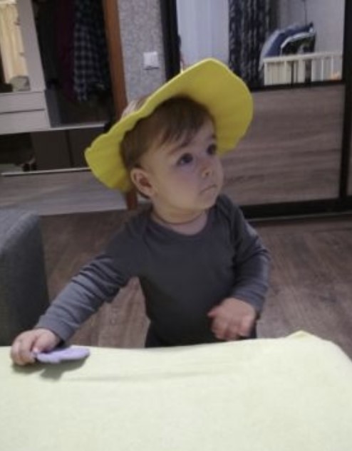 A nice hat, light, I hope it will be convenient to bathe the child.