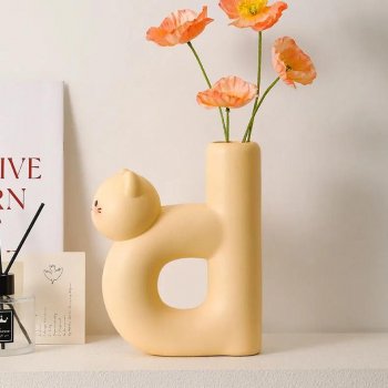 Introducing our Charming Cat Letter D-Shaped Resin Vase, a delightful addition to any room looking to blend modern style with a touch of playfulness. Crafted from durable resin, this unique vase embodies the perfect balance between practicality and charm, designed to elevate your living space’s aesthetic. Whether you’re seeking a new centerpiece for your desk, a lively touch for your living room, or a whimsical way to display your favorite blooms, this vase is sure to capture hearts and spark conversations.