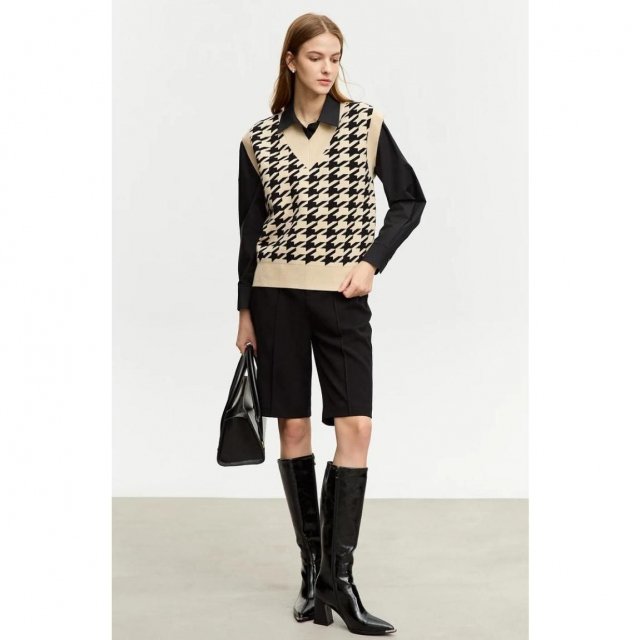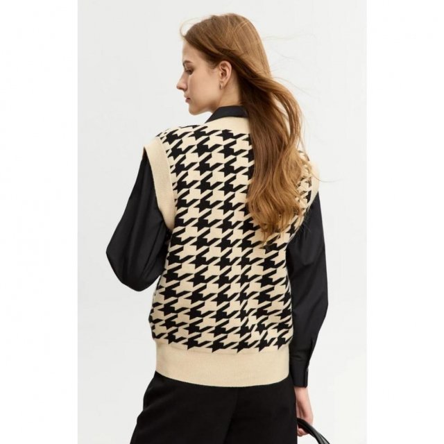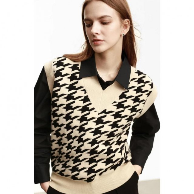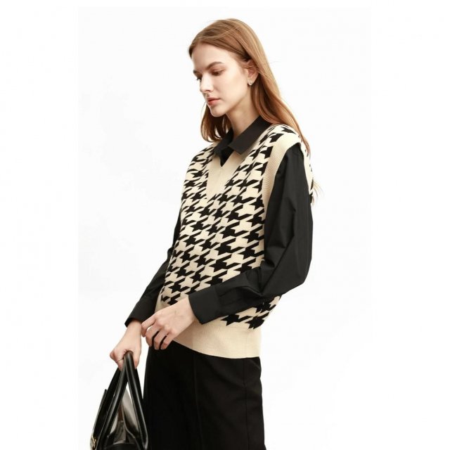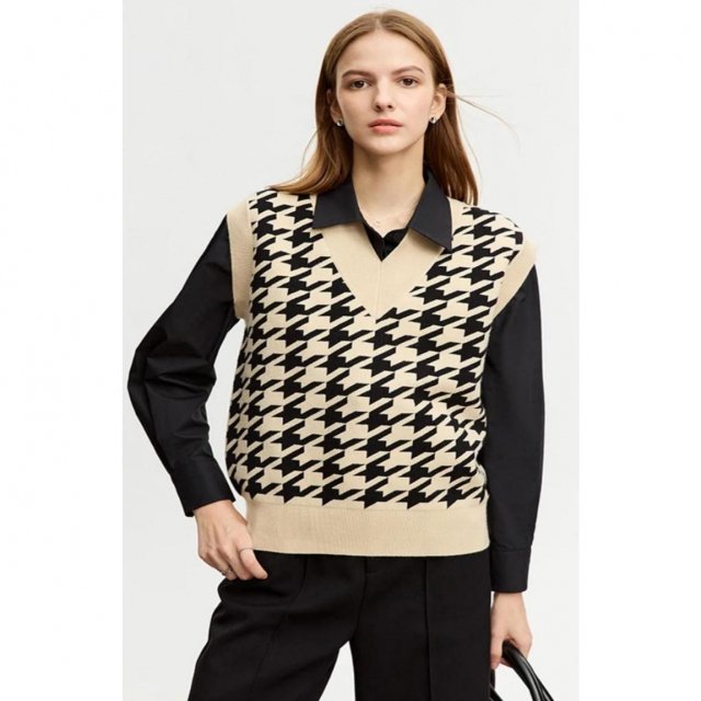 Our vest boasts a unique blend of polyester, nylon, acrylic, and viscose, ensuring both comfort and durability. The pullover closure and regular clothing length offer ease of wear and a fit that flatters every body type. The intricate thousand bird check jacquard pattern adds a touch of sophistication, making it an ideal choice for the office or a casual day out.