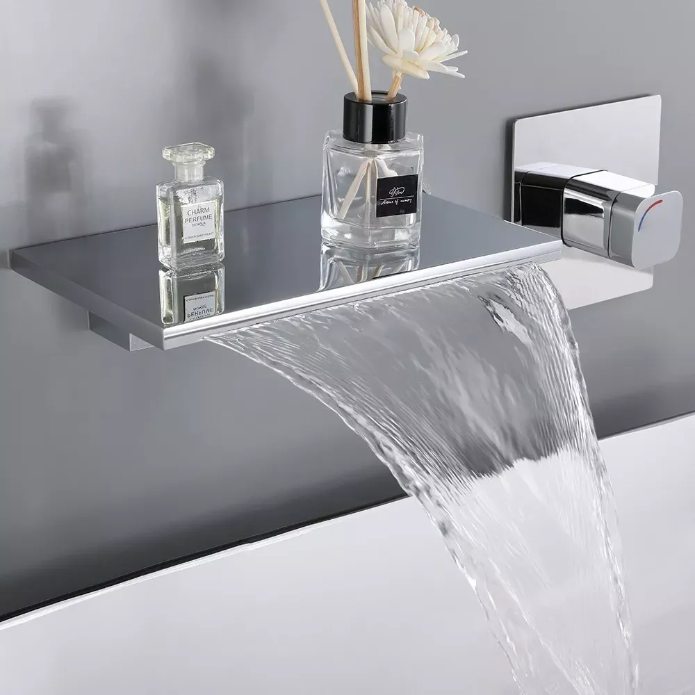 Step into a serene sanctuary every time you use our Contemporary Chrome Waterfall Bathroom Faucet. Designed to dazzle, this faucet features a striking waterfall spout that delivers a sheet-like flow of water, offering a tactile and visual experience akin to a natural cascade. Its wall-mounted design not only saves precious counter space but also contributes to a minimalist and clutter-free bathroom aesthetic.