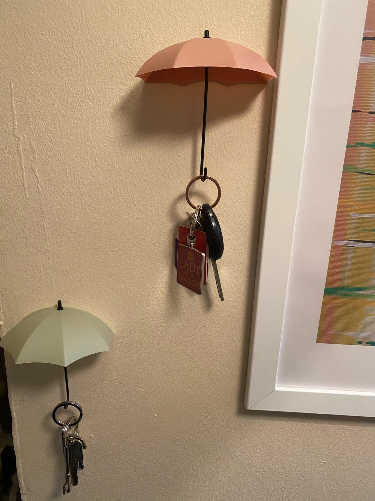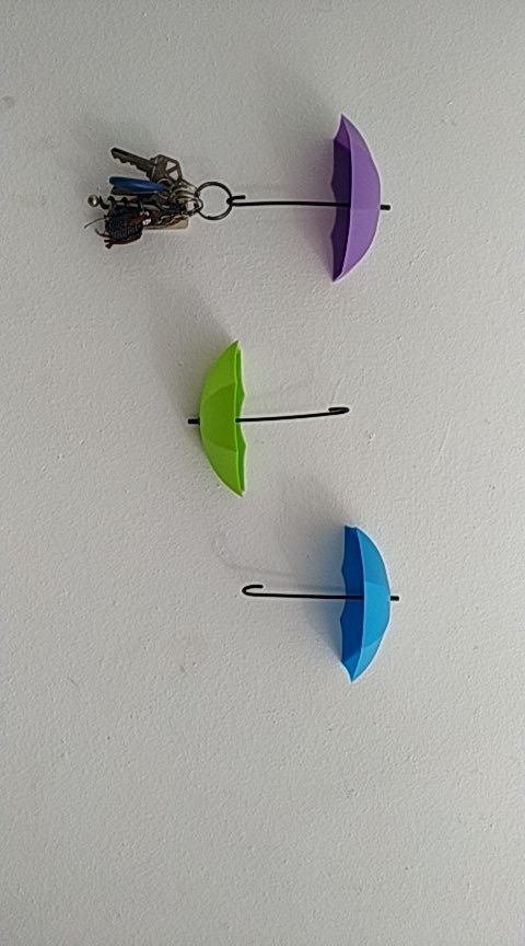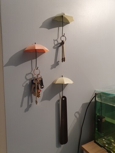 These umbrella key hooks are so cute! I did not give a great rating for adhesion because I used Command Strips to put them up as I am in a rented home. Otherwise I like them a lot!