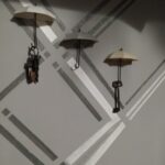 Plastic umbrellas, fastened on the two sides of the tape, look beautiful.