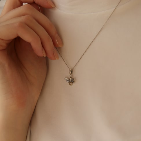 Made from 925-sterling silver and oxidized silver, get a sturdy pendant that is adorned by crystal and amber cubic zirconia. While not real diamond, the crystal-make gives off a very similar look and feel. Our silver used is safe and durable, resisting scratches and damage. Our bee is sized 0.75 x 0.47 in (1.9 x 1.2 cm) for a small yet eye-catching piece of jewelry.