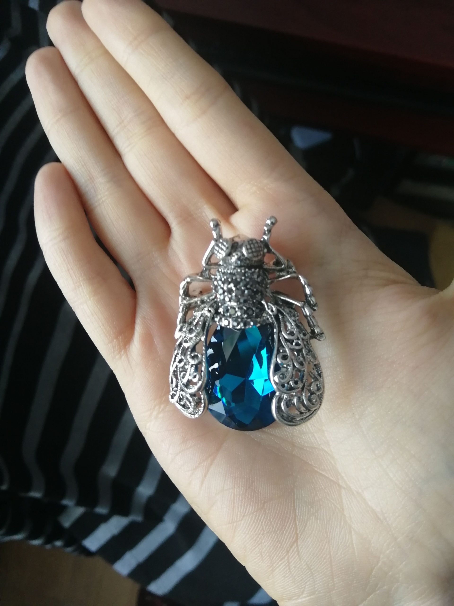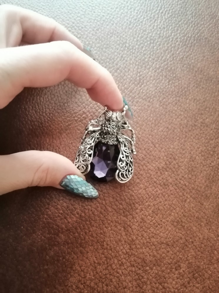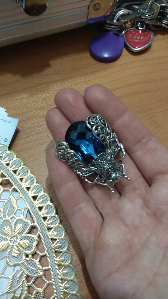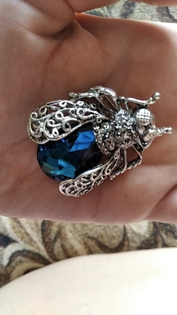 I have been looking all over for the perfect insect brooch and this one caught my eye. It’s beautiful! Nice costume jewelry piece. Well made so far, I think it is a nice size not too small or big.Coloring and jewels on the piece are nicely placed. I will seal them before wearing to make sure I don’t lose any pieces.