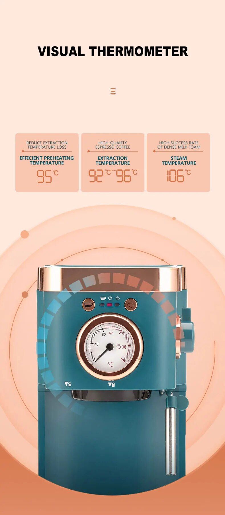 I’m so happy with my purchase of this espresso coffee maker. Its semi-automatic operation makes brewing simple and enjoyable. The design is both beautiful and durable. A solid choice for any coffee enthusiast!