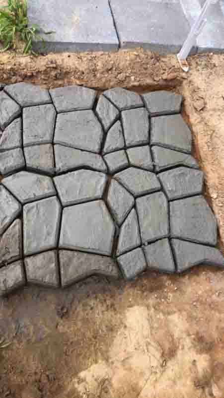 I love this stone walkway mold. It is so simple to use. Each side has either an “out” or “in” pattern. Simply match your next section so it interlocks.