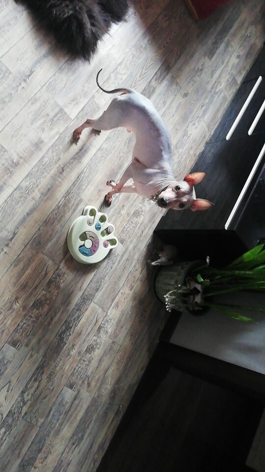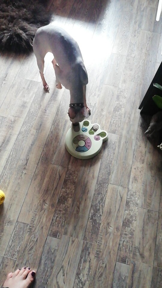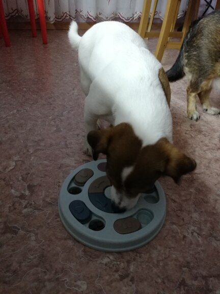 Entertaining feeder for a puppy, I like it, with pleasure looking inside the delicious.