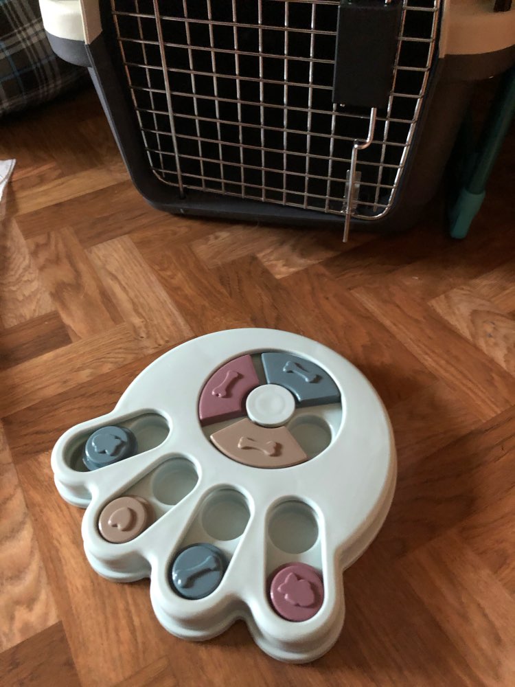 Not sure how long this puzzle toy will keep her entertained, but I’m hoping for at least a little peace in the evenings.