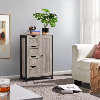 Ideal for keeping your bathroom clutter-free, this cabinet offers ample storage space in its four drawers and adjustable shelving within the cupboard. It’s perfect for organizing everyday household products, toiletries, and towels. The modern, handle-free design and gray color add a touch of sophistication to your space, making it a functional and aesthetic addition.