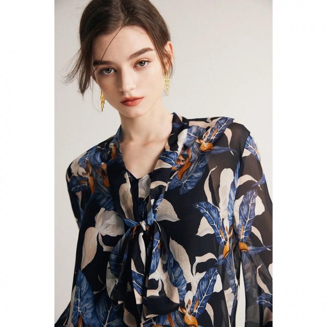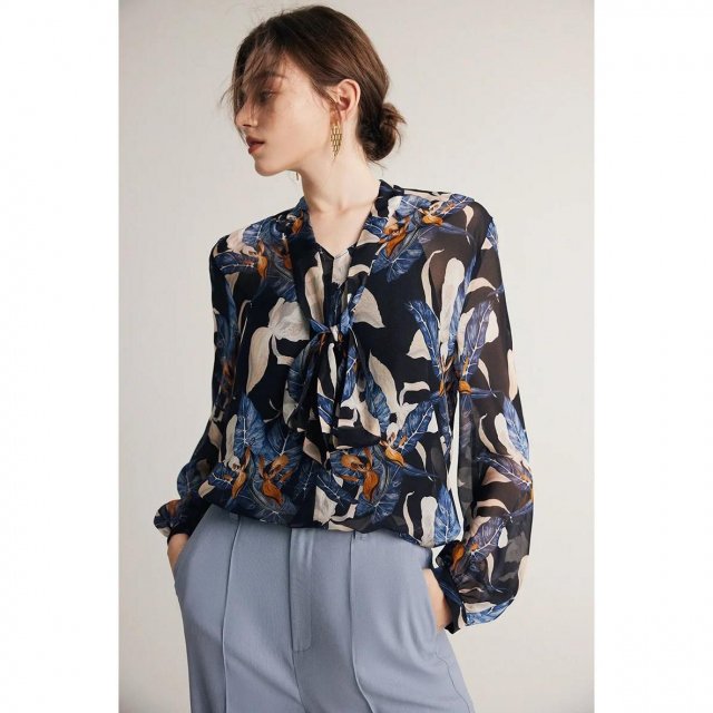 This blouse shines in versatility. Whether you’re heading to the office, attending a casual brunch, or dressing for a night out, its timeless design and lightweight fabric make it suitable for any season and occasion. The scarf collar adds a touch of sophistication, making it a great choice for professional settings, while its playful print keeps it casual enough for everyday wear.
