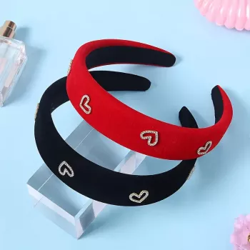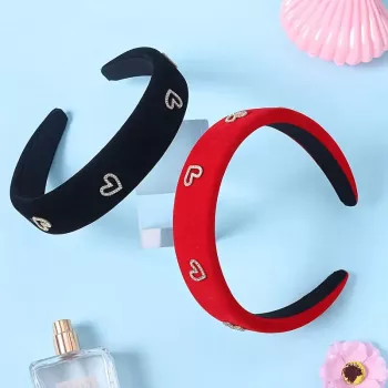 Elegant Velvet Rhinestone Heart Headband
