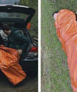 In the most dire of situations, the vivid orange color of our Emergency Sleeping Bag can act as an emergency signal to rescue crew in the air. You can use the bag to form a visible 79 x 35.5 in (L x W) signal to anyone to see. This sleeping bag is an absolute necessity for camping and outdoor adventures: it not only keeps you warm at night as a sleeping space and protected from extreme elements, but can save your life in life-rescue situations and emergencies.