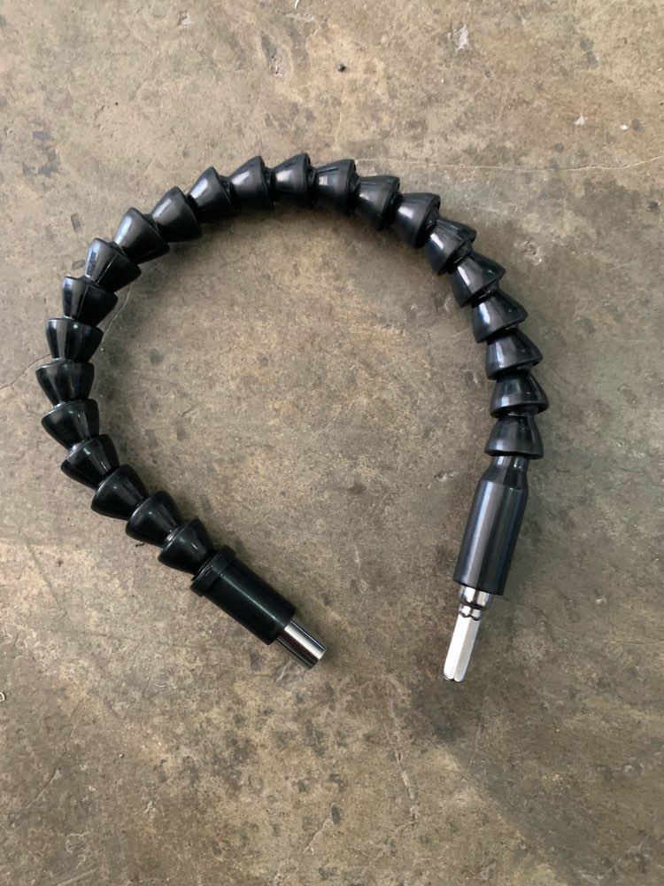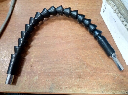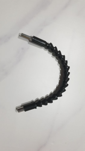 It can be flexible, it can be bent to any shape. Lately I’ve been drilling pictures and tables, when I didn’t have this extension bit drill, there were screws that I was very hard to drill because I didn’t have the right position. Now when I’m not in the right posture, I can still drill very easily and comfortably. It is very sturdy, I fear it will slip out of the drill but not. It works better than I thought and expected. In general there is nothing to criticize.