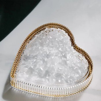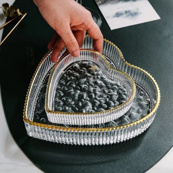 Introducing our exquisite heart-shaped glass plate, a symbol of elegance and versatility. Crafted with meticulous attention to detail, this plate is not just a dish but a statement piece that enhances any table setting or vanity. Its unique love heart shape, complemented by a luxurious gold rim, brings a touch of romance and sophistication to your dining and decor experience. Whether you’re serving a delectable dessert, organizing your precious jewelry, or simply seeking an eye-catching incense tray, this plate promises to elevate the ambiance with its timeless charm.