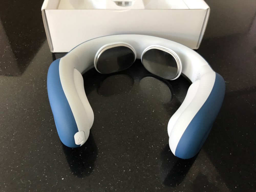This little gadget took a little getting used to at first but after my second use, it felt wonderful. Fits comfortably around my neck and the heating function feels amazing. Simple operation and the instructions were easy to read. The beep sound is loud so I can be sure that I can hear the modes changing or the unit turning off. The auto shut off after 15 minutes was a nice touch as well. Small and low profile makes this easy to take with me when I am traveling.