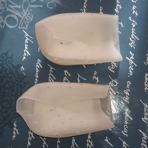The heel socks are great, it is a bit sticky, (yes, as others have noted here) — but a bit of powder can help this issue. This is an excellent set otherwise, very supportive of one’s feet when worn. I don’t feel any discomfort even if I wear it for a full day.