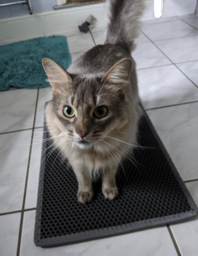 Placed this cat litter mat in front of the kitty litter and I can’t believe how much litter it’s catching. It’s stopped it being spread over the floor and cleaning it up is very quick. The mat is made from good quality materials and it’s soft enough for the kittens to not mind walking on.