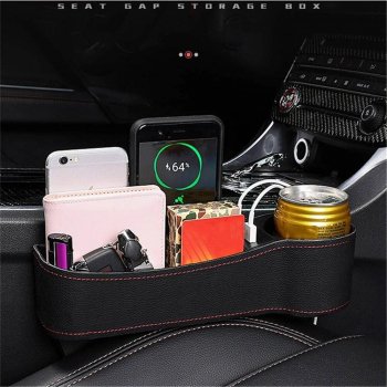 Ever felt the frustration of your phone slipping between the car seats, or the mess of scattered items cluttering your ride? Our Leather Car Seat Gap Organizer is designed to seamlessly fill that gap, offering not just storage, but a range of features that elevate the driving experience. Not only does it provide additional storage space, but its sleek black leather design also blends perfectly with any car interior, enhancing its aesthetic appeal.