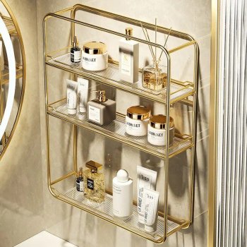 Our Luxurious Gold Bathroom Shelf stands out with its sophisticated design and functional benefits. Its no-punch installation makes it a dream for renters and homeowners alike. The three-layer storage capability, combined with its light luxury gold finish, not only saves space but also brings a chic and upscale look to any bathroom.