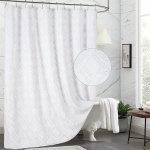This premium shower curtain is not just about looks; it’s built to last. Its thick fabric ensures privacy and durability, while the waterproof feature keeps your bathroom floor dry and safe. The inclusion of silver metal hooks adds a contemporary flair and ensures easy installation, effortlessly blending with any bathroom fixtures.