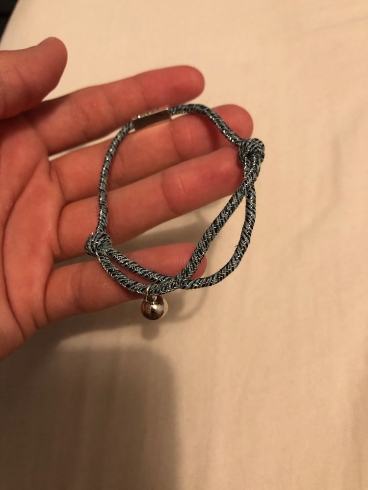 Such a cute simple couple bracelet. The size is adjustable and it’s super comfy. I even swim with it on and have no issues. It does stick to everything magnetic, but I find it kinda fun!