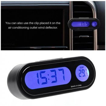 Mini LCD Digital Car Clock with Luminous Thermometer & Backlight