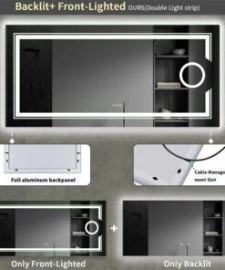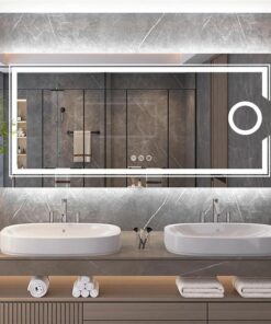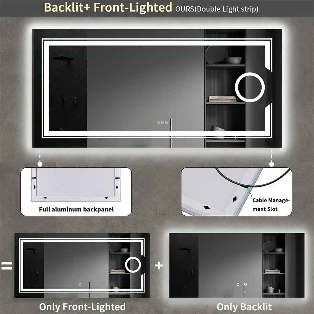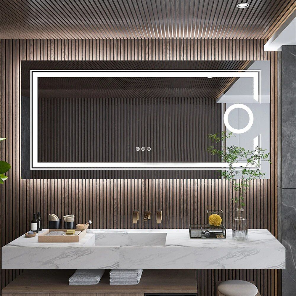 Modern Frameless LED Lighted Bathroom Mirror with 3X Magnifying Feature & 3 Color Lighting