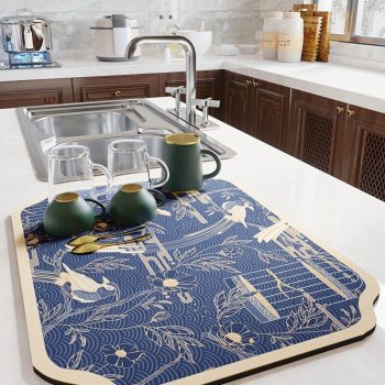 Modern Geometric Polyester Dish Drying Mat
