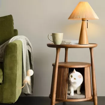 Its unique appearance and solid construction add weight, ensuring stability against any accidental nudges from pets.