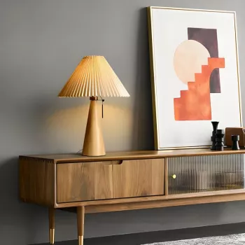 Introducing our Modern Nordic Pleated Table Lamp – a perfect blend of functionality and elegance. Designed to bring a warm, cozy ambiance to any room, this lamp is not just a lighting fixture, it’s a statement piece. Its unique pleated lampshade and solid wood base give it a timeless appeal, making it ideal for both contemporary and traditional interiors.