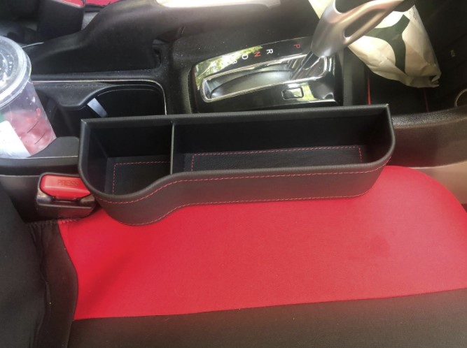 Excellent product and innovative idea. It is sturdy and fits between car seats. Accommodating wallet, keys, phone, small water bottle and any other small item. Good quality and premium looking product.