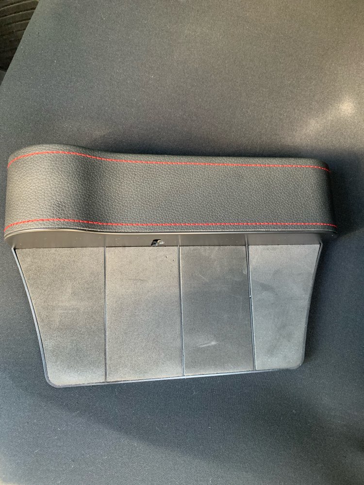 Very well made, sturdy, passenger side organizer! My husband uses it in his truck and he has had it for about a week now. He loves it. It is very well made, and he loves that his change and other things can go in there as opposed to between the seat and the center console (making it impossible to retrieve later). It is an excellent buy—a bargain considering how well this product is made! The red stitching is beautiful. This would make for a very nice gift for that hard to buy person!
