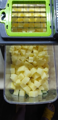 I got this as a Christmas present for my husband for Xmas. I was actually the first one to try it out. I made fried diced potatoes with our dinner tonight and decided to try out the chopper to save time. I’m in love with it and will probably end up using it more than he does. I was able to chop 3 large potatoes in less than 2 minutes. It’s also very easy to manually clean and can go in the top rack of the dishwasher which I love. Overall a wonderful addition to the kitchen and I’m so happy I found it.