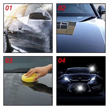 For optimal results, avoid direct sunlight during application. Choose a cool, shaded spot and follow the waxing order: roof, front cover, both sides, and then the rear. Use only a thin layer. Prior to use, have a waxing sponge and a soft polishing towel on hand.