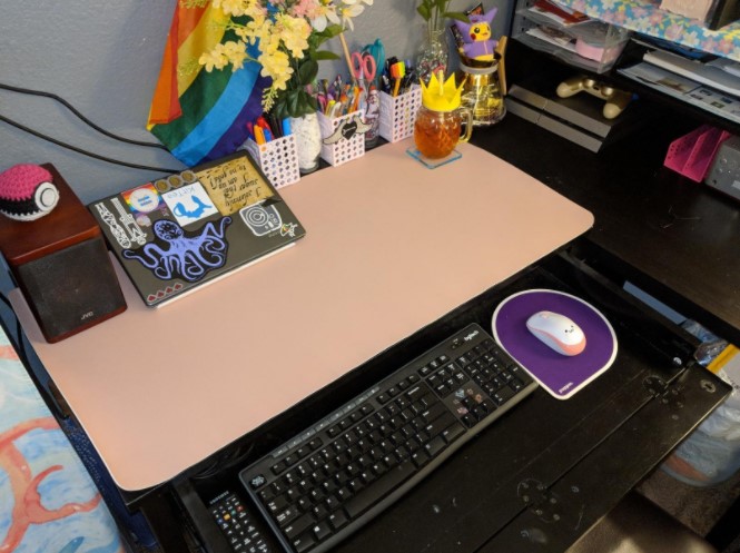 It’s kind of like having a giant mouse pad, but I love this. It makes me feel like I have a nicer desk without actually upgrading the desk.