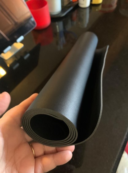 I like this. The large mouse pads over time fall apart and u spill on those and it’s an awef mess. This product is clean, sleek, pleasing to the eye. Thin and flexible but strong. Didnt take long to relax after opening after it came rolled up tight. Spills wipe right up. I thought it may look cheap or feel weak, I was sk wrong. I’m glad I went this route. I will purchase again.
