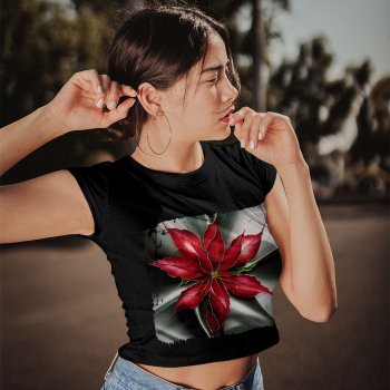 Poinsettia Christmas Women’s Cropped T-Shirt – Art Crop Top – Graphic Cropped Tee