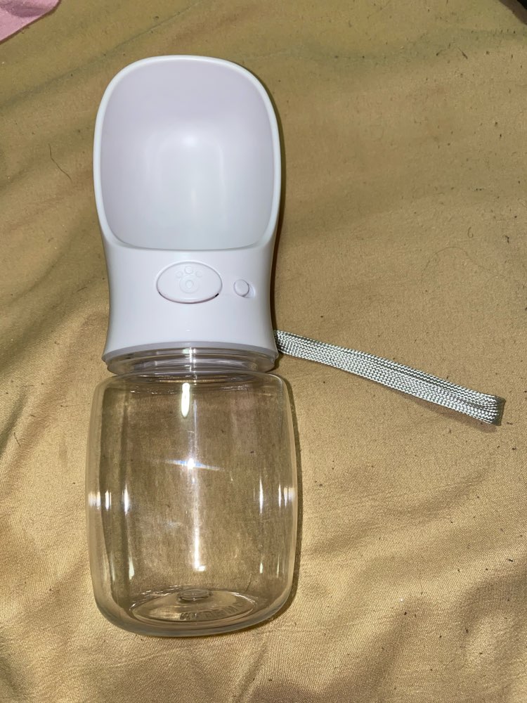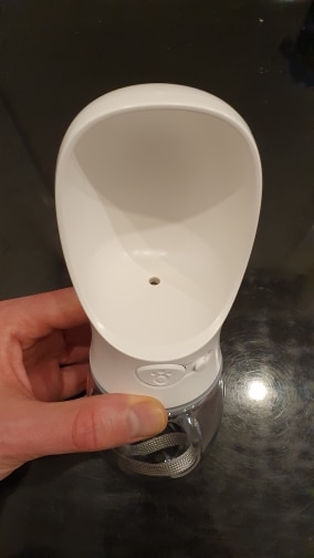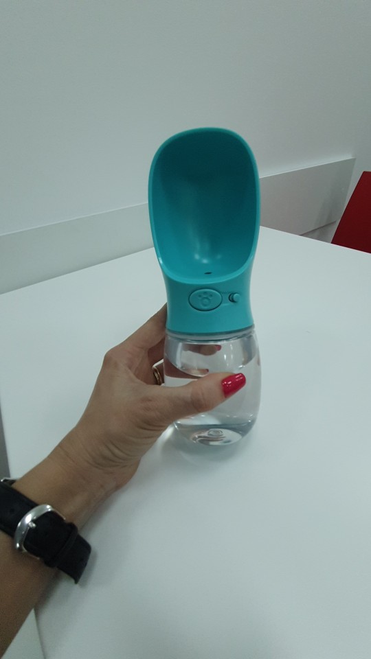 It’s a wonderful water bottle for your dog just tipping over and push a button and it fills with water and he drinks it and you throw the rest out .He gets quite a few drinks and it’s just really easy to carry round I highly recommend it~❤️