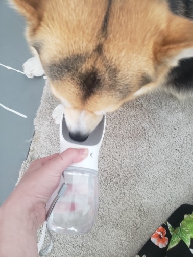 Now with this water bottle/bowl combo I just fill the water bottle and go! My dog LOVES drinking from the contraption. Loves it so much that when we get home from the walk, she will sit on the couch and I will sit next to her and just let her drink water out of this water bottle as she lays on the couch.I bought this to take on long walks with my dog every afternoon. Where I live it gets super hot during the day so it’s essential that my dog stays hydrated while exercising. I used to have to bring a large water bottle and collapsable bowl on the walks which were super heavy and bulky.