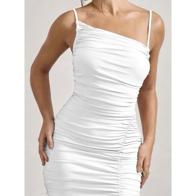 The dress features a flattering sweetheart neckline and spaghetti straps, creating a look that’s both chic and timeless. The high-stretch synthetic fiber blend of cotton, polyester, and spandex ensures a snug yet comfortable fit that adapts to your body shape. With its above-knee length and pleated silhouette, this dress promises an elegant and sensual appearance.