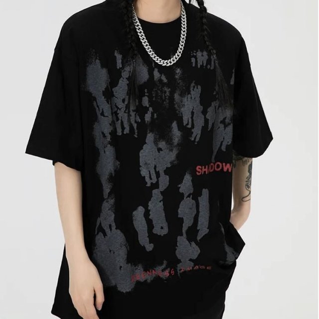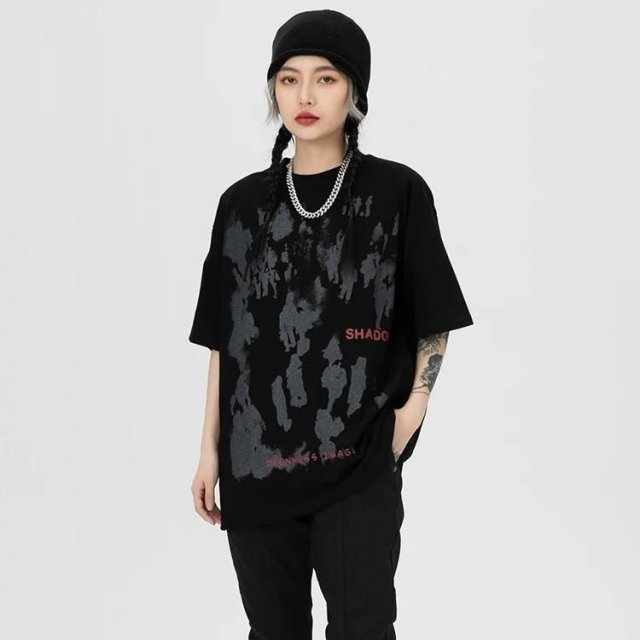What sets this T-shirt apart is its unique blend of street-inspired style and practical comfort. The high-quality cotton material feels soft against the skin, ensuring comfort all day long. The shadow letter print adds an edge to your look, making it more than just a basic tee – it’s a statement.