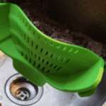 My sink doesn’t need to be empty to accommodate setting a strainer in it, this tool basically rinses clean with hot water and does not leave pasta bits and potato starches all over like the steel colander or the foldable one I have made of pretty much the same material. Certainly some water is left behind if there is a large volume of stuff in the pot, but setting it back on the hot burner that is now cooling takes care of this perfectly. The compact size of it makes it easy to store and again, to clean! Bonus: it fits the Instant Pot too
