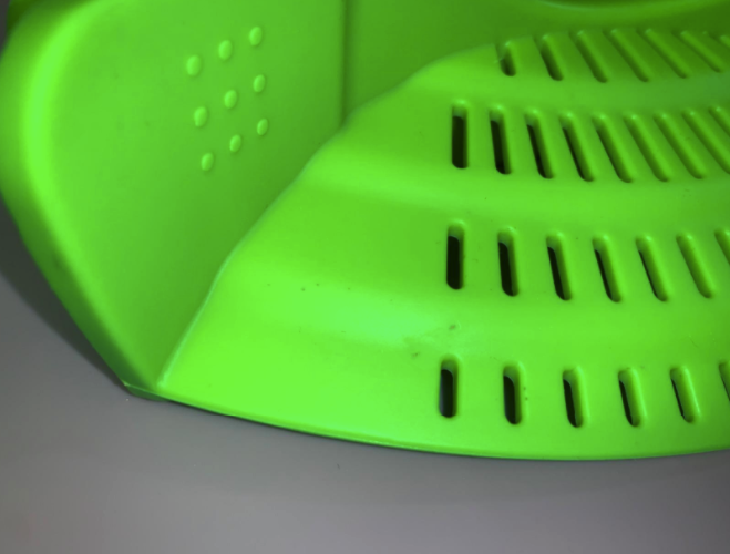 I can now strain pasta from the boiling pot by simply holding the pot’s handles and not have to hold a strainer in place – no more burned hands! I just received the product, so I can’t really attest to its durability. However, I have other silicon cooking utensils and know that they hold up extremely well to high temperatures and extensive usage (unlike my previous PLASTIC strainer that simply cracked and fell apart after a couple years of use).