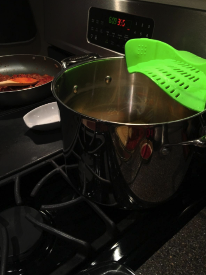Why didn’t I discover this earlier??? I am not a fan of cooking, really, but I have to with a family of 5. This helps cut down on a mundane process. You know you’re an adult when…you get excited about kitchen gadgets. There are reviews that say it won’t fit over pots or pans with ‘lips’ but I’ve used it just fine with those types. You have to just really wiggle it in there slowly.