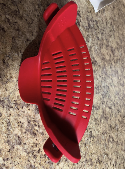 I wasn’t really sure about this gadget, but the spouse was always draining some fat from meats in a frying pan so I thought I’d help him out with a fun thing. Turns out I use it more than him and for all my pastas, potatoes, etc. I pretty much gave up on my colanders and other strainers unless it is something very fine I must strain. The thing sticks on pretty much any pot or pan I have and will mostly hold the items in if it isn’t too full, even my large pot for noodles. The reason I use it instead of everything else is how easy it is to use and then to clean.