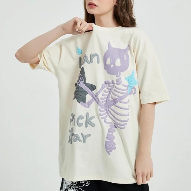 Step into the world of street fashion with our latest addition – the Skull Skeleton Star Graphic T-Shirt. Perfectly blending comfort with style, this 100% cotton tee is a must-have for your summer wardrobe. Designed for those who dare to stand out, it features a unique devil horn skull pattern, making it a striking choice for any casual occasion.