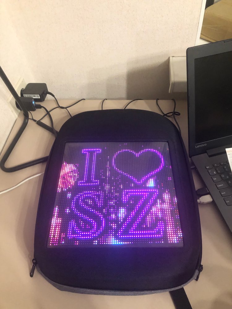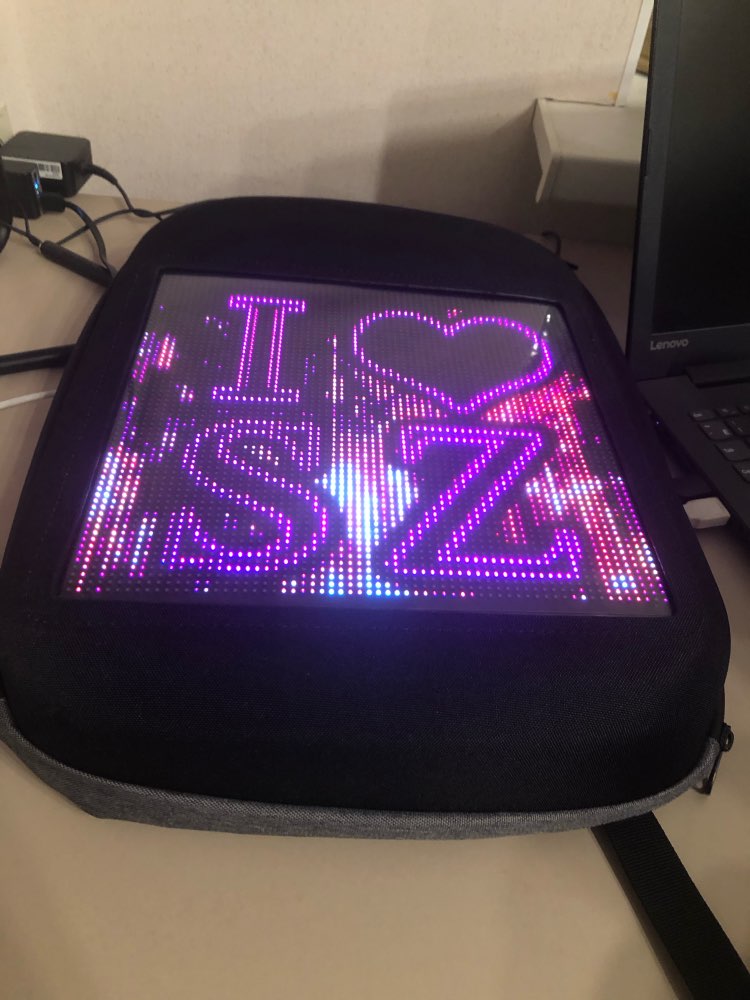 This bag is amazing! I love how I can create my own pixel art and animations to display on the bag. The LEDs are nice, bright, and color accurate. People love it and ask where I got it from. The material quality of bag is very durable and it’s water proof.