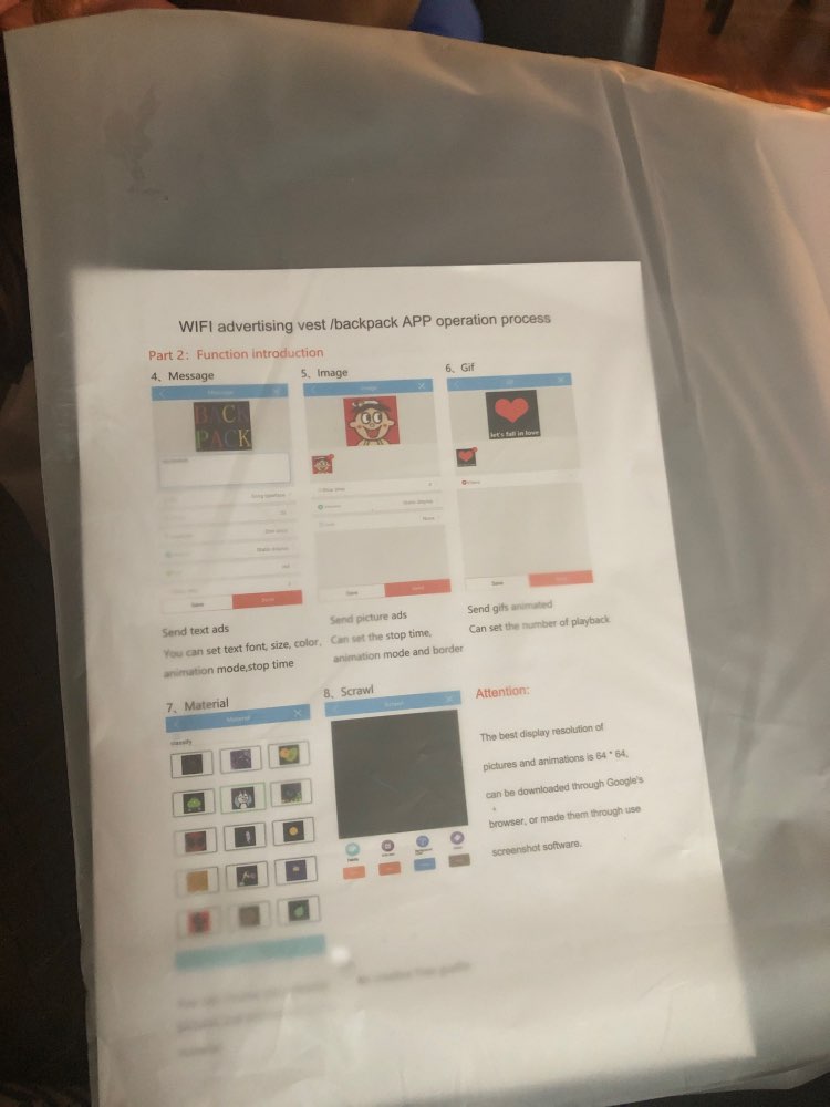 I absolutely love the bookbag. It’s awesome and has so many more features and options for the LED display than the video and pictures let on. The seller was very professional and was always quick to respond to all my emails i would definitely buy from them again. I bought this for my 16 year old and he loves it, he changes what it says or does daily.Unique and very tech cool.